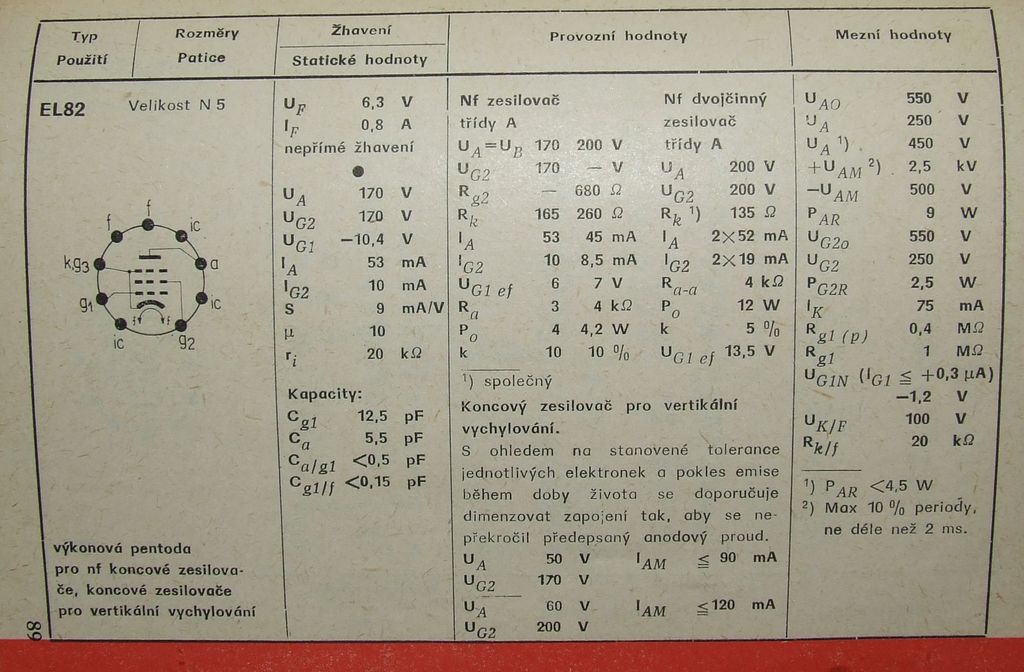 Třeba Příruční katalog elektronek, obrazovek a polovodičových prvků z roku 1973 elektronky EL 82 zná.