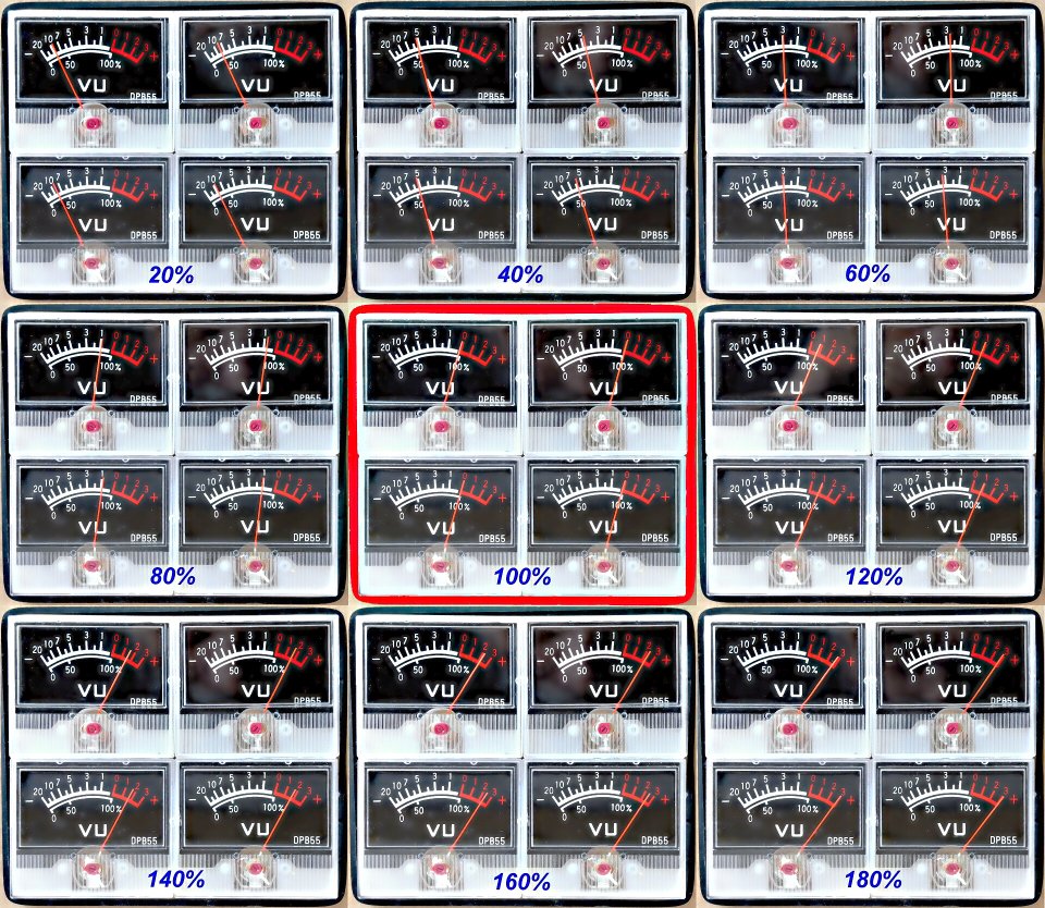 Čili jako indikátor záznamové úrovně jsou tato měřidla zcela srovnatelná s tím, co je třeba v B100 nebo B73. Jiné úrovně si ukazuje víceméně po svém, což třeba zrovna u záznamových zařízení nemusí nijak vadit.