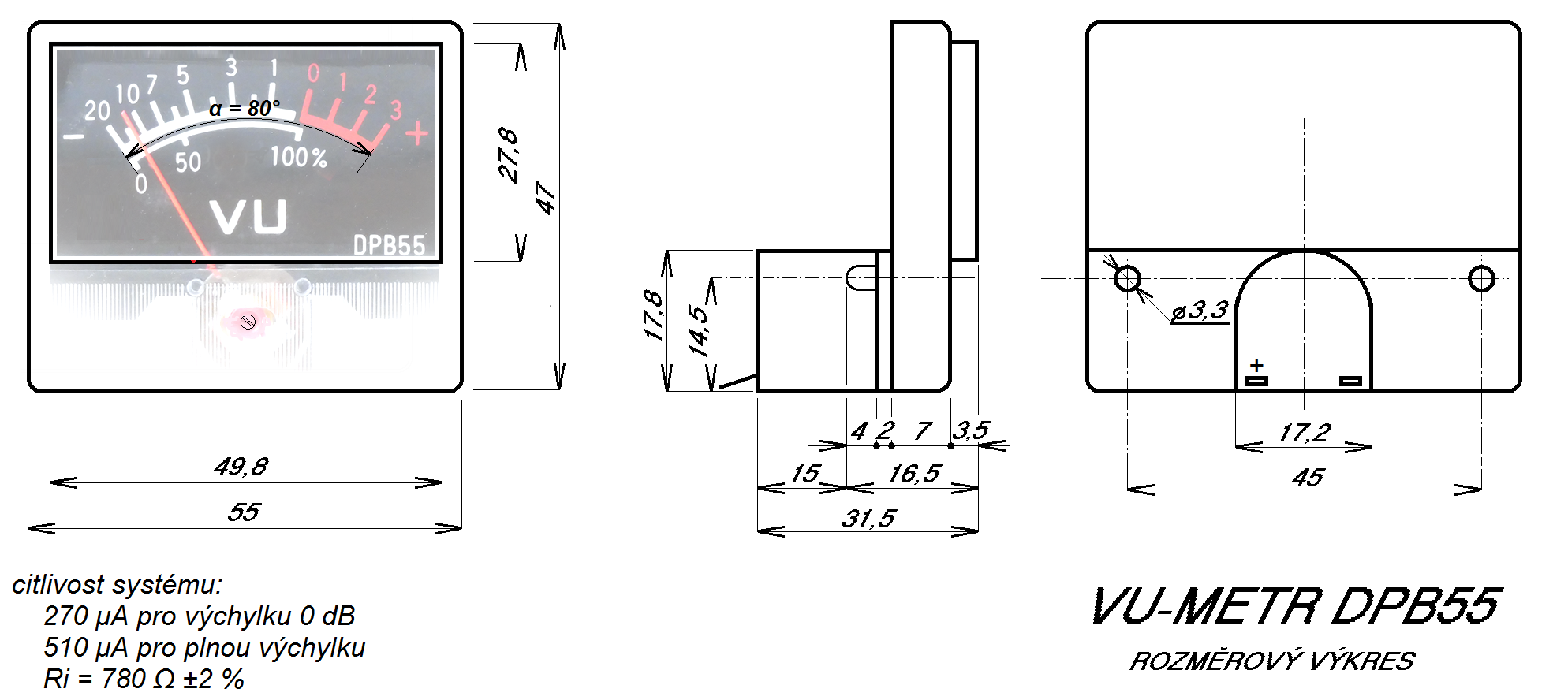 Citlivost pro výchylku 0 dB je jednotná: co kus, to 270 µA.