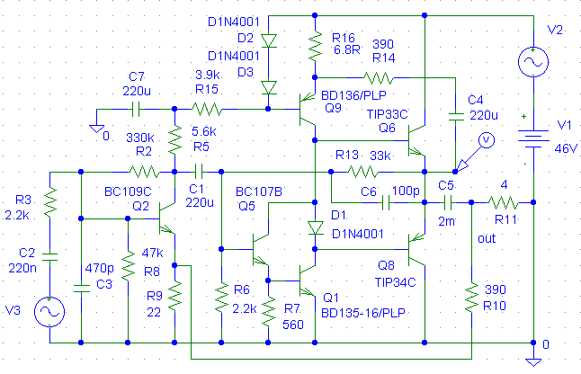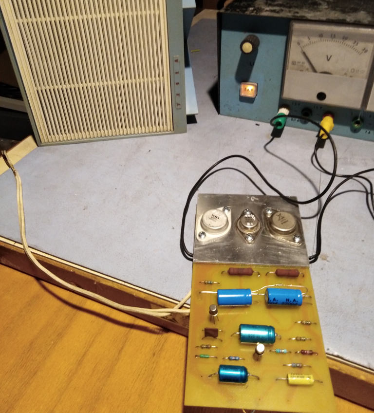 2 x 20W podle T74 byl v těch letech první bastlířský počin, který jsem viděl realizovat. Stavěl to kamarádův táta. Moje schopnosti a finanční možnosti v té době stačily tak akorát na 2W s GC511/521. Po nekonečných a mnohdy inspirativních diskuzích zde, jsem se z nostalgie pustil do realizace tohoto zaprášeného projektu. Konečně už mám i doma možnost něco spájet, tak jsem se do toho pustil. Zatím jen testovací zapojení s "nedobovými" komponenty. Napájeno ze zdroje 2 x 15V pro operáky a empétroskou. Výstup do rozhlasu po drátu (bez trafa).