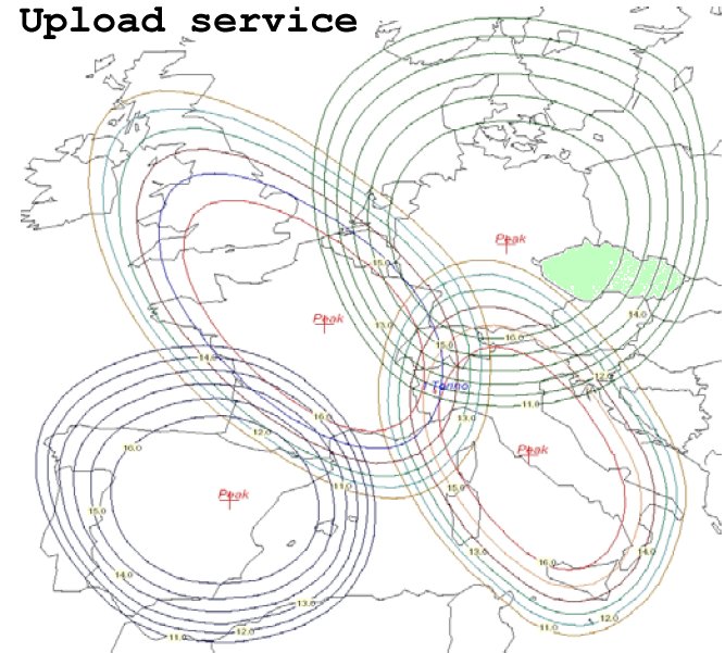 Krom toho, zjistil jsem, že při spojení uživatel ČR - satelit - server v USA je spojení někdy také takto: uživatel ČR - satelit - satelit - server USA. V cestě je totiž ještě druhý satelit, ale ne vždy. Někdy 1.satelit pošle signál dolů do Anglie na server.