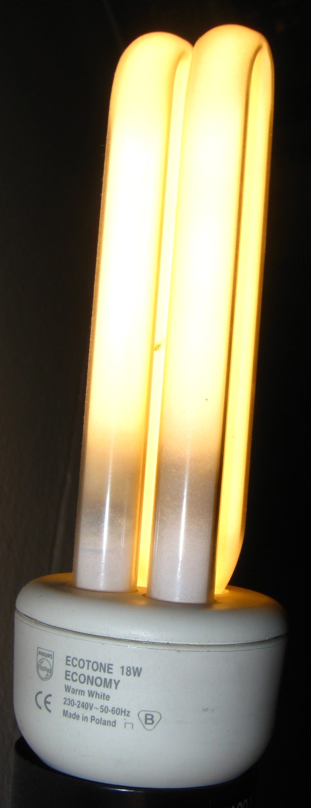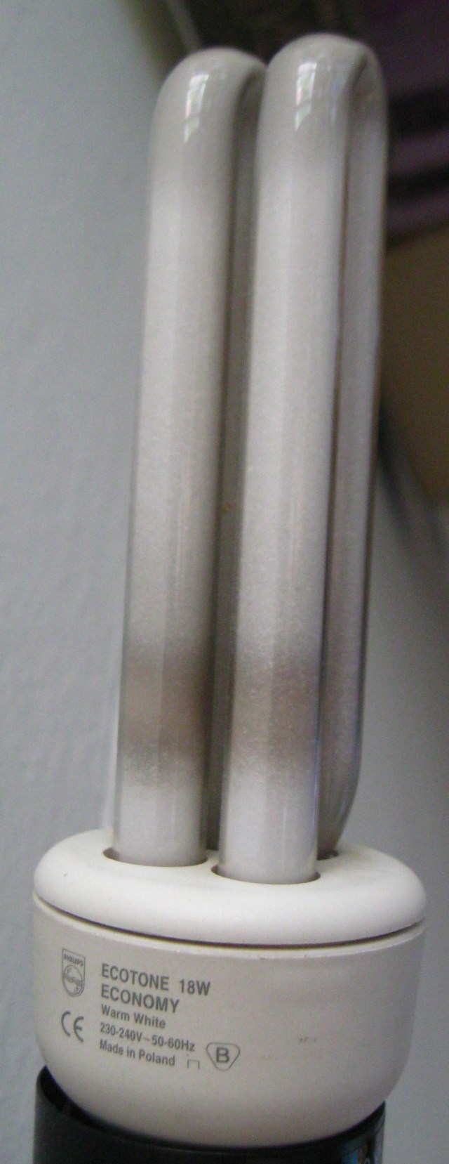 Klasická kompaktní zářivka Philips Economy. Byla v nepravidelném provozu od roku 2005. https://www.flickr.com/photos/korytnackaseven/sets/72157693267134165