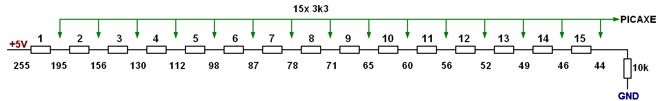 Pak bys mohl jak hodnoty z analogového vstupu, tak i výstupní kódy uložit do dvou polí. Porovnával bys v cyklu hodnotu z analogového vstupu s jedním polem a pak bys hned měl výsledek v druhém poli. Jde o to, že pak jednoduše můžeš rozšířit množství rozeznávaných hodnot, aniž bys musel měnit vlastní porovnávací proceduru.