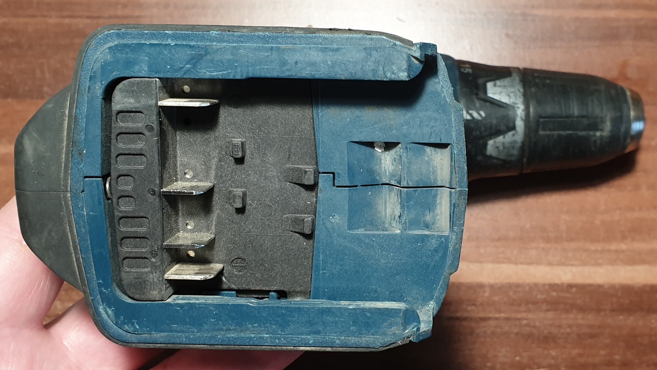 Protože vrtajda nemá díru pro krk baterky tak z toho vyvozuji že tam v originále už jsou Li-ion články.A proč jsou na portu pro baterku navíc ty dva piny