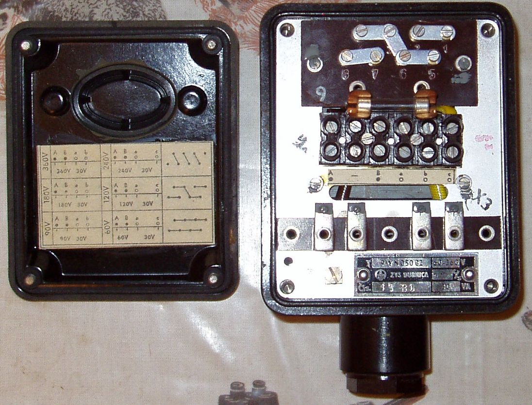 Tohle na fotkách je větší typ distribučního-blokového 30VA trafa pro cca 80-100 účastníků, bylo ještě jedno menší 15VA: