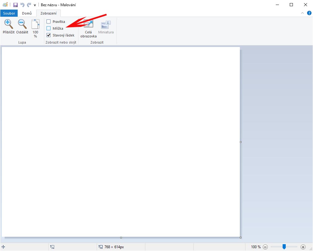 Možnosti-Zobrazit-Rastr (Mřížka) nebo tak nějak. Ve Q10 na všech našich verzích normálně malování máme. Standardně to spouštím z příkazového řádku jménem spouštěcího souboru "mspaint".