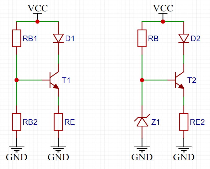Ten je založen na tom, že pokud bude napětí na bázi (napětí na RB2 nebo ZD) konstantní, bude konstantní i napětí na odporu RE, jen snížené o Ube (0,7V) a tedy bude i konstantní proud tímto odporem