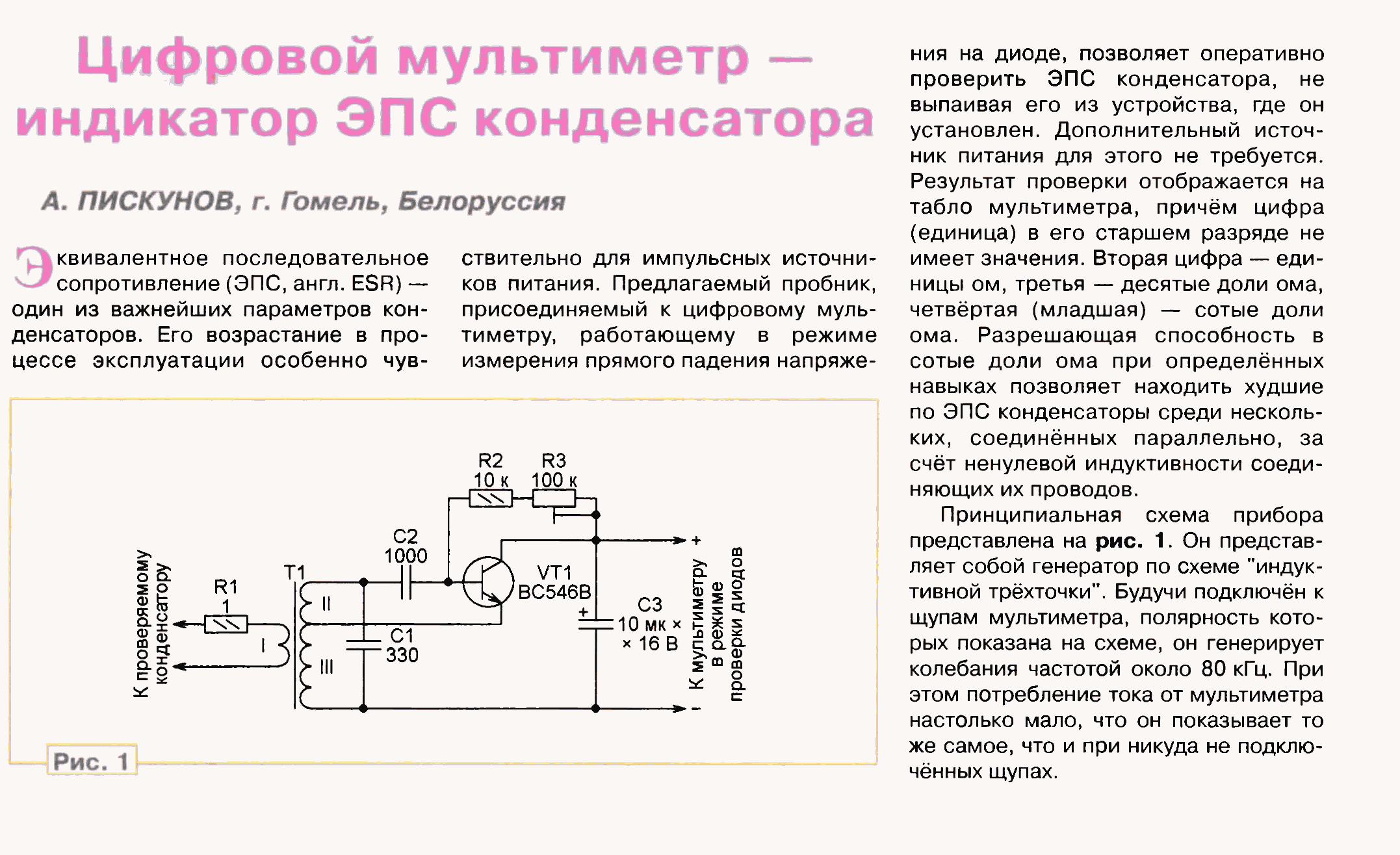 V ruskom Radiu 12/2019 je ,, projekt ,, na ESR meter.