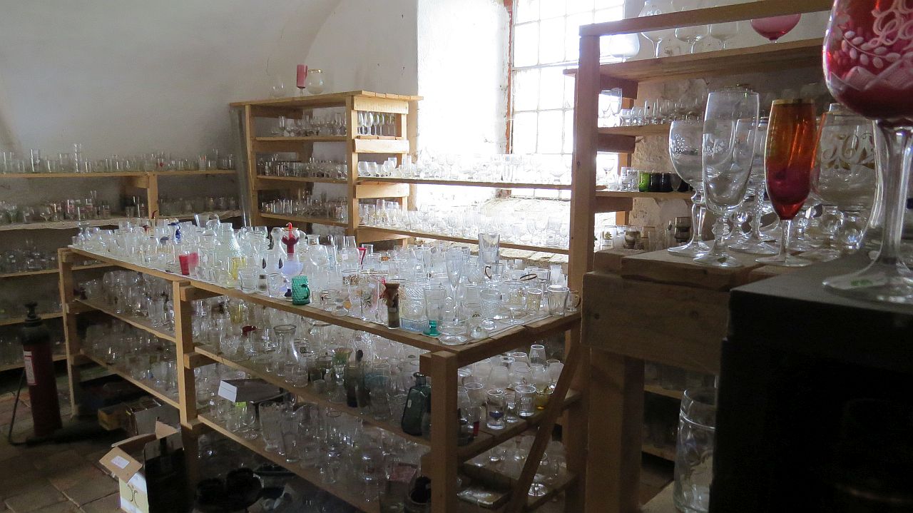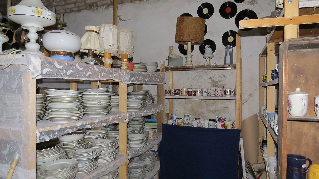 Ale kdyby bylo potřeba vybavit chalupu, tak to se dá. Nádobí, skla a keramiky je tam dost. Stejně jako knih.