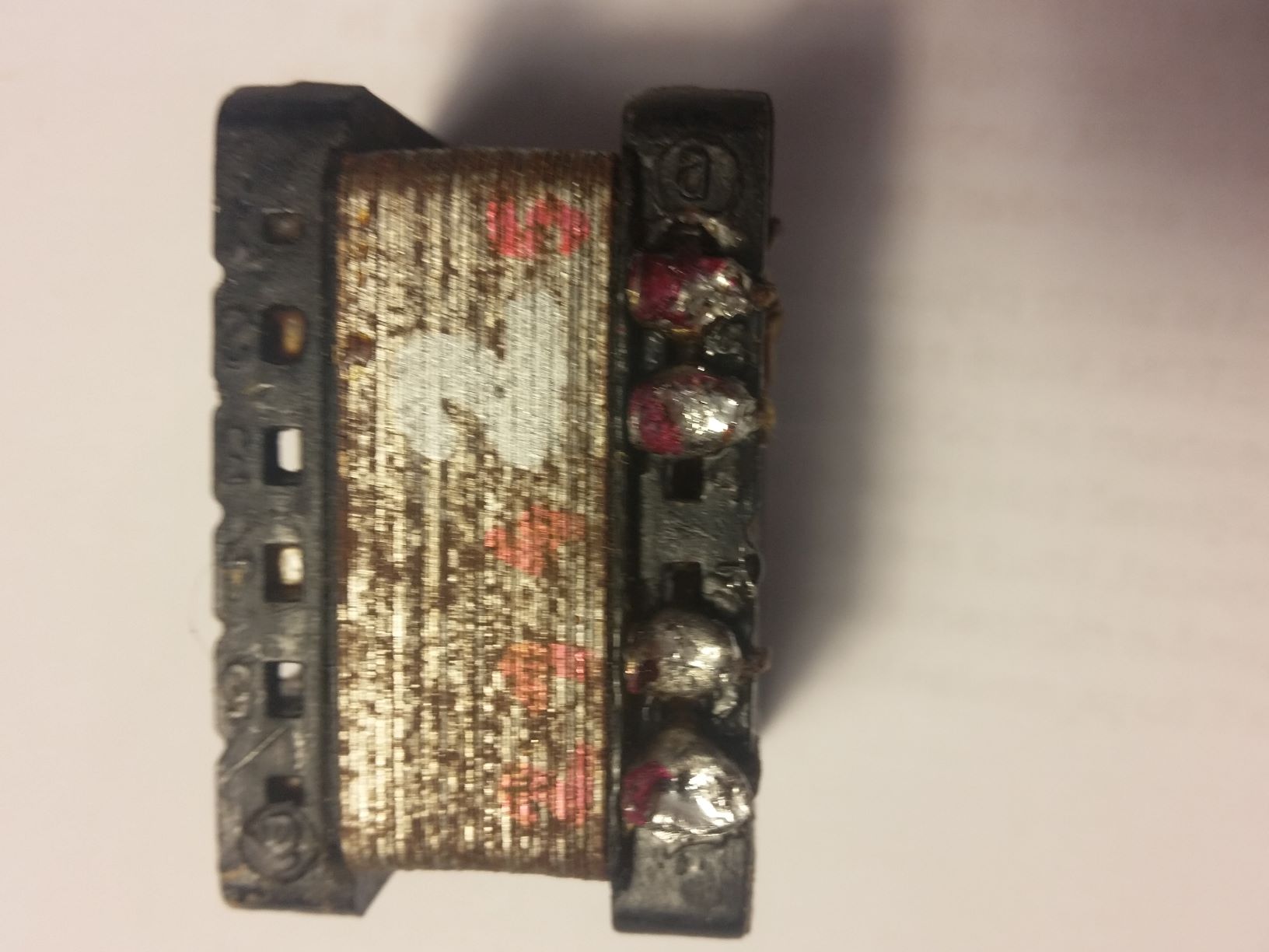 Tak jsem vymontoval transformátor TR2 z RF 11. Fotky přikládám. Má dvě vinutí a nic víc o něm nevím. Rozměry celkové jsou 35 x 30 x 23 mm.
