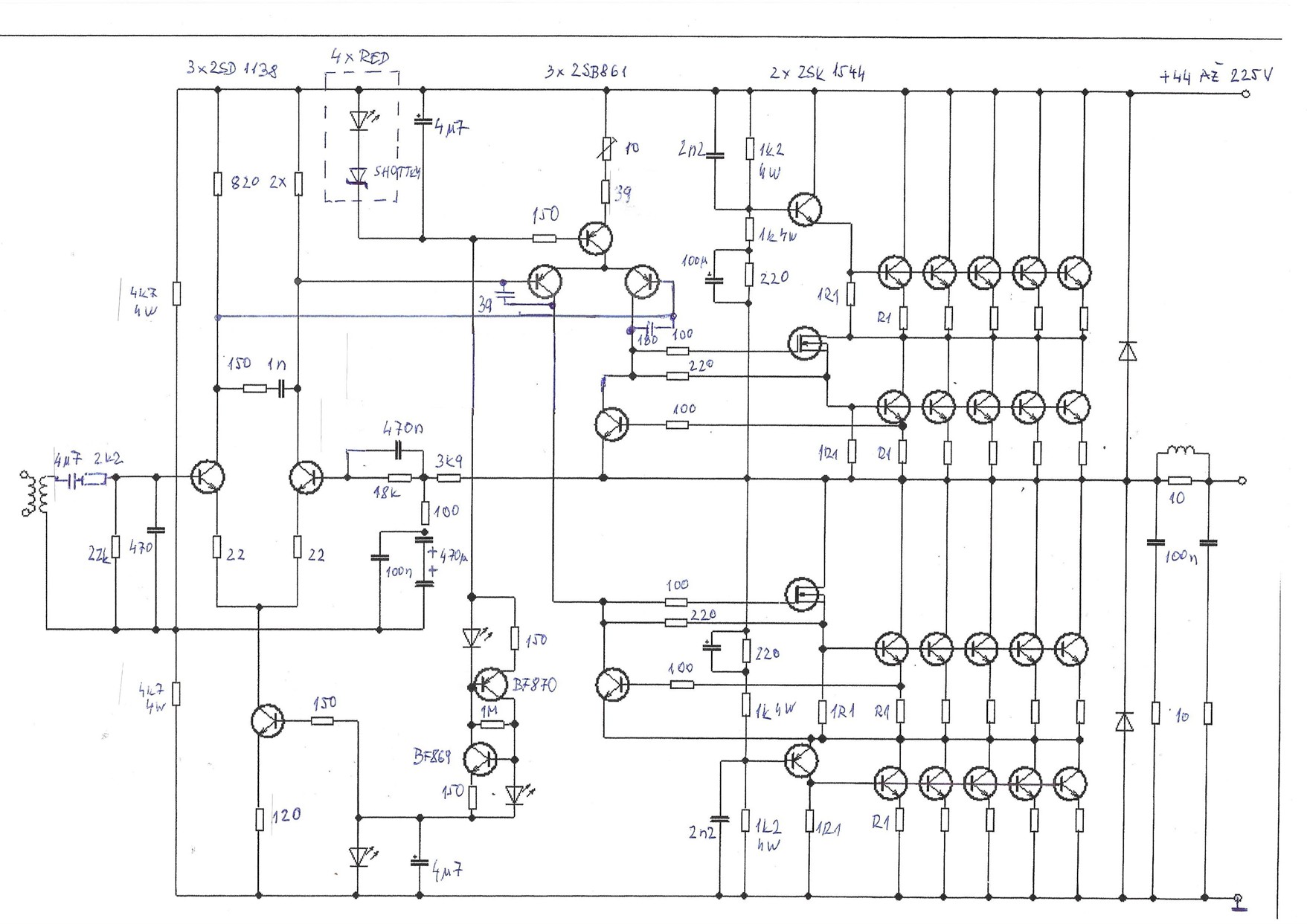 Myslím to mělo i zdvojený budiče v sérii a koncáky všechny NPN TO3/60V-15A.