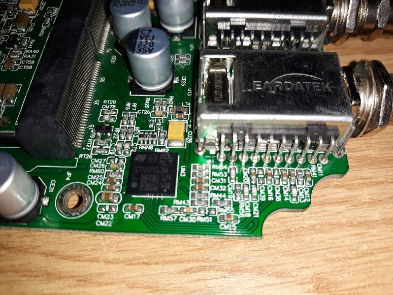 Mám podezření na Sat modulátor STV0913B, ale jist si tím nejsem. ještě by to mohl dělat tuner. Napětí sedí - teda až do tuneru, dál nerozebíráno.