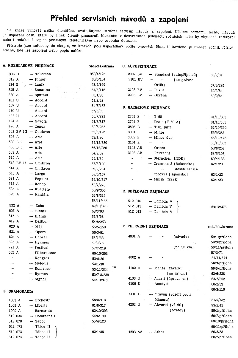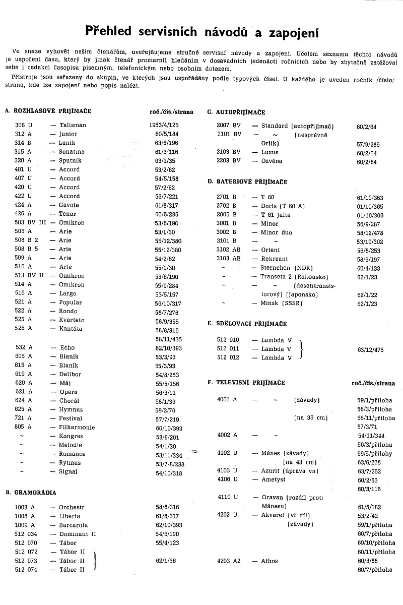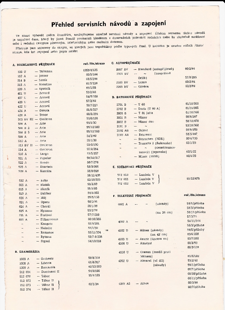 Ve snaze vyhovět našim čtenářům, uveřejňujeme stručné servisní navody a zapojeni. Účelem seznamu těchto návodů