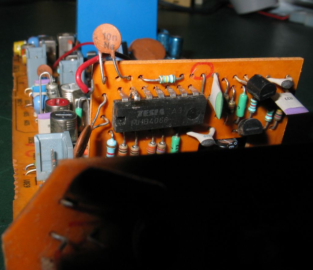 Na zdrojovej doske je toho domaceho viac - okrem MA7805 aj KD366, male tranzistory aj elyty Tesla. Ale velke 4700uF/25V asi nebolo cim nahradit, tak su Panasonic.