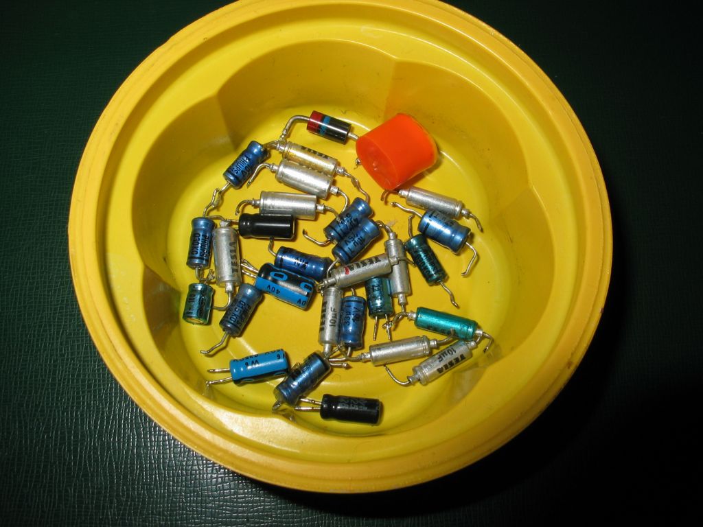 V zdroji je vadna oranzova "zelenina" aj niektore 10uF a 20uF Tesly. Zaujimave su velke 4700uF/25V Panasonic.
