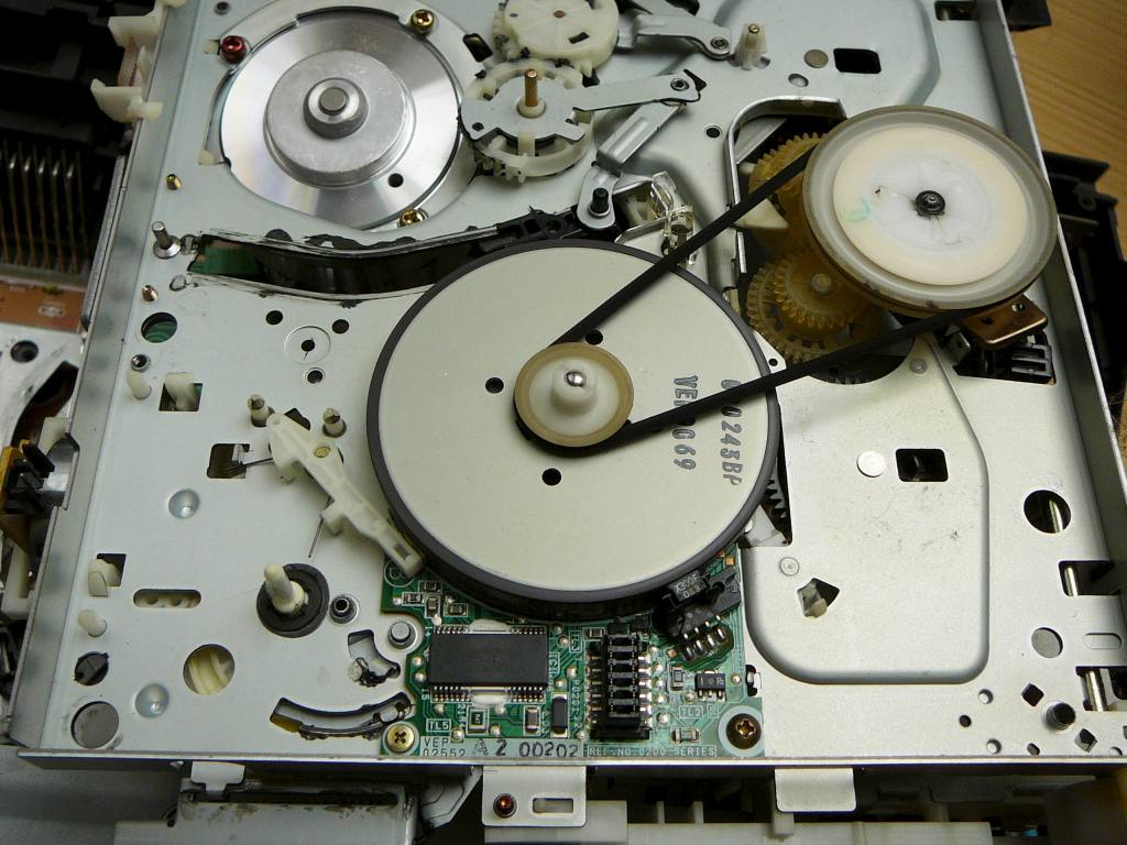 Pustiul jsme se do třídění vedeorekordérů PANASONIC. Mám tady NV-HD642, NV-FJ612, NV-SD427. U všech je tentýž problém. Mají malý tah a neutáhnou pás. Očištění kladky nepomohlo, stejně by mělo mít vliv pouze při přehrávání a né pře převíjaní. Otázka je jak poznat jestli to je mechanická či elektrická chyba. Ta mechanika se nedá provozovat tak abch měl přístup zespodu a viděl jestli se zastaví i motor nebo to prokluzuje třeba v té třecí spojce. Přikládám foto mechhaniky třeba si někdo kdo tyto videa dělával spomene.