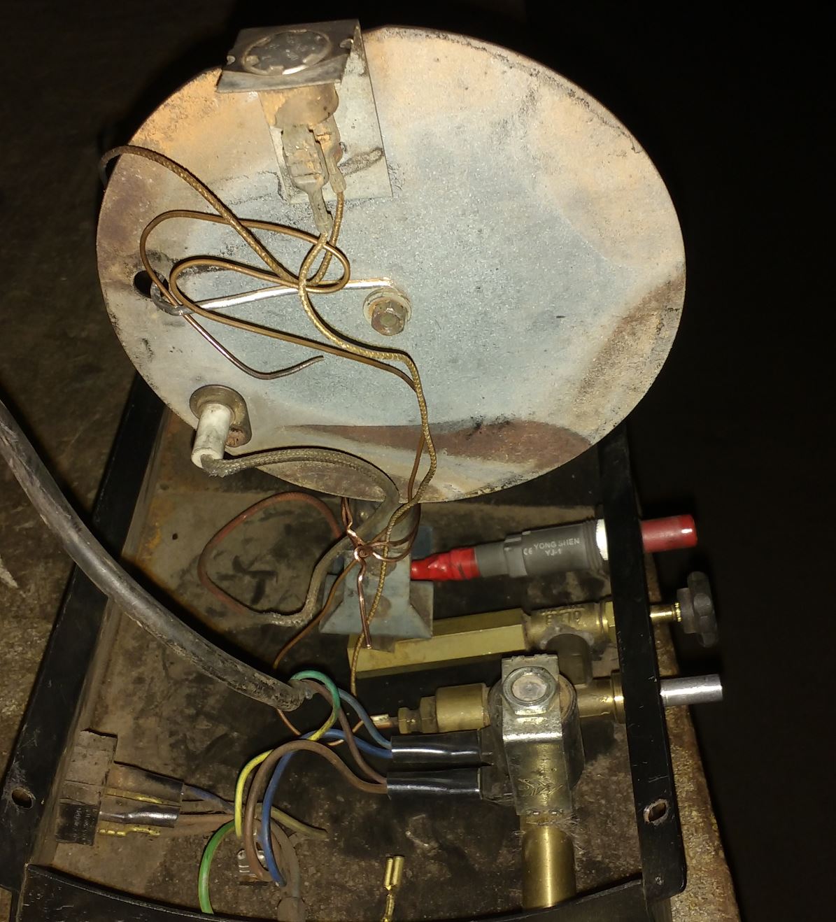 Ten nejspíš bimetal úplně nahoře je pří vypnutém stavu hořáku tzn. při cca 20°C je sepnutý. Ale kde je ten termočlánek...přece to není ta kapilára v červeném kruhu? Tzn. že ten hliníkový drát v modrém kruhu, který vypadá že ho tam někdo nabastlil vede k termočlanku? A ta podle mne kapilára má být tak jak je anebo má být v prostoru plamene?