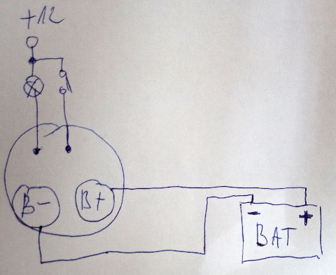 Ještě se vrátím k tomu co se tady řešilo o pár příspěvků výše, že přebíjení může způsobovat přechoďák např. na kostře, já stále nechápu proč by to tak mělo být. Alternátor je zapojený zhruba takto (příloha), svorka + a -, vývod na kontrolku a vývod kde se objeví + po zapnutí klíčku (nějaké napájení regulátoru).