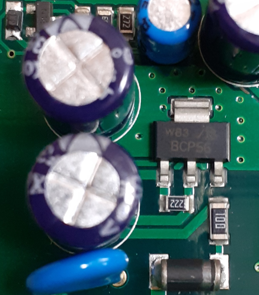 Vyhořela napájecí část, viz. příloha z internetu. A nemůžu rozpoznat ten tranzistor/stab? rezistor, diodu?