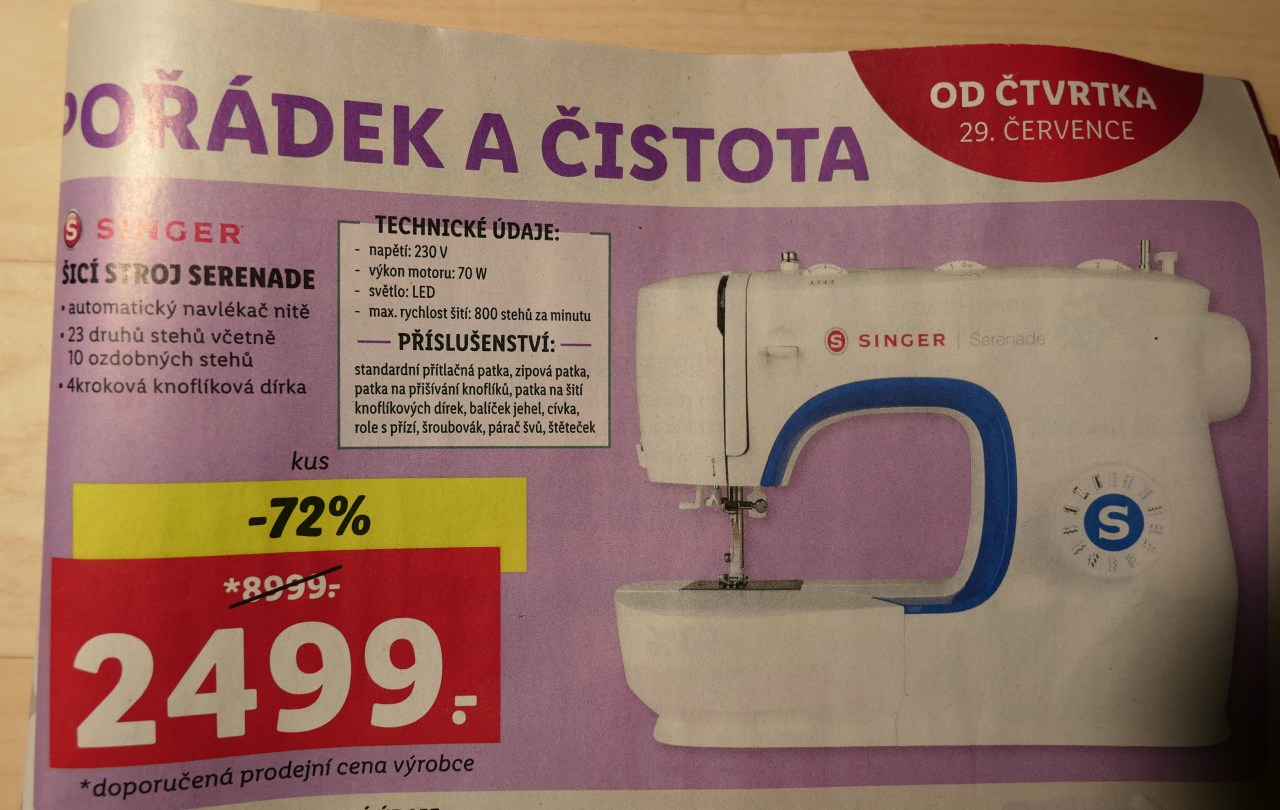 Někdo tady podobný odložil na place. Byl jen špatně navlečený. Šije a dá se u jednotlivých stehů nastavit délka a šířka. Kyvný chapač je údajně odolnější na špatné zacházení.