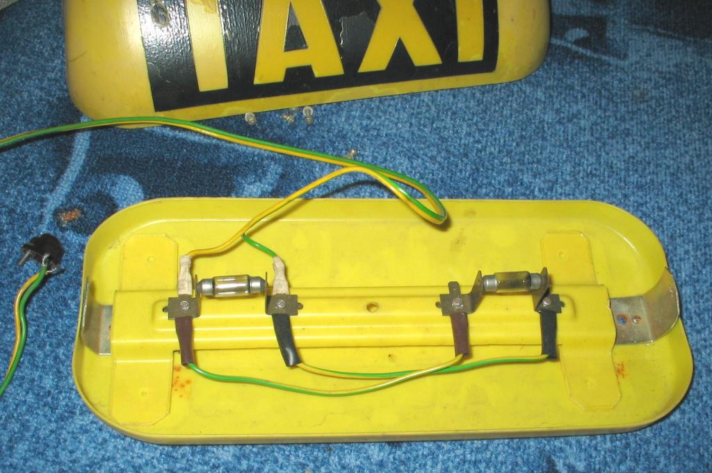 Pri kontajneroch som nasiel stare svetlo TAXI aj s ramom na auto (ten som uz odmontoval). Odhadujem to na zaciatok 90. rokov, ak to nie je este starsie.