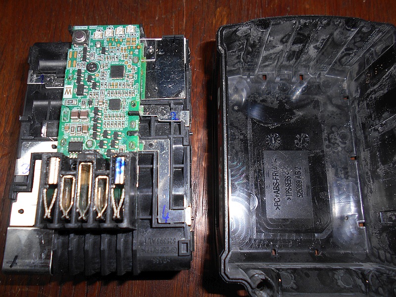 Aby baterie obživla, musím ji lab. zdrojem nabít na 21 V přímo na vývodech 1 a 5 (vývody jsem si pro sebe očísloval zprava: 1 gnd, 2 nějaká komunikace, 3 přívod z nabíječky do baterie, 4 asi senzor teploty, 5 vývod z baterie do spotřebiče).