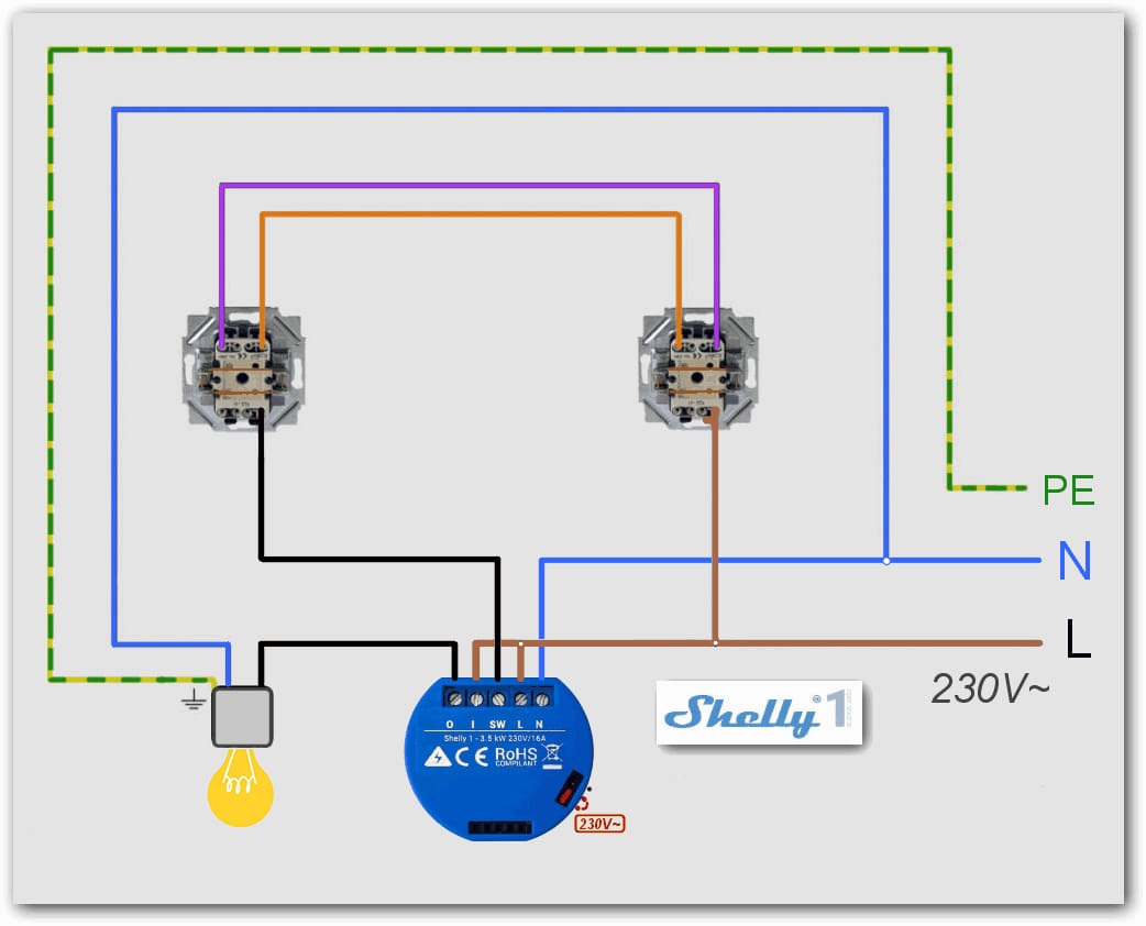 koupil jsem na zkoušku modul Shelly 1 a rád bych ho namontoval do vypínače, který je s dalším ve schodišťovém zapojení. Podle výrobce to jde a je k tomu i schéma.