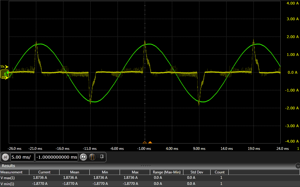 Taky mi proudová sonda ukazuje na odběru spínaného zdroje nějaké "fousy", nevím kde se to tam bere, pokud zdroj připojím rovnou na síť tak to tam není, nebo jen nepatrně.