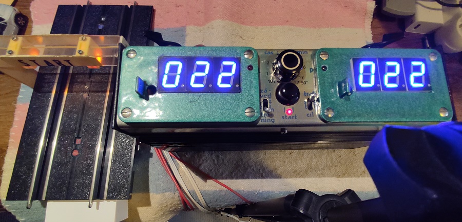 K autodráze jsem postavil elektroniku s počítáním kol pomocí fotobuňek. Ovládač měl tyto funkce: