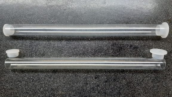 průhledné trubičky se zátkami.