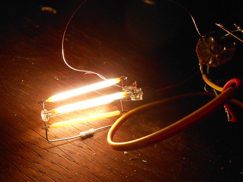 Jedné čínské, která odešla při prvním zapnutí, jsem uflákl patici a baňku i s LED tyčinkami upevnil do patice od úsporky, opatřil kapacitním srážečem s ochranným rezistorem a pořádně vyfiltroval. Už to nevypadá tak hezky, ale už to funguje 4 roky, příkon to má 2 W a obstojně to nasvítí chodbu.