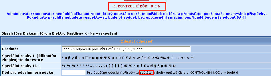 Pro odeslání příspěvku si přečtěte (nikoliv opište) čísla v KONTROLNÍM KÓDU v bodě 6.