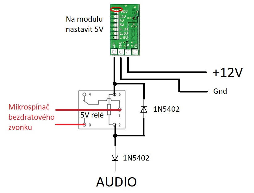 Zatížením vodiče AUDIO cívkou relé (respektive přivedením 12V na vodič AUDIO přes civku relé) se zřejmě způsobí to, že videotelefon pak sám nezpracuje požadovanou funkci.