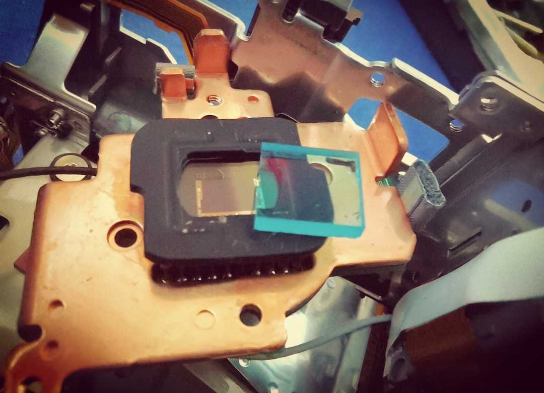 Samozrejme rozobral som cely optický systém, než som zistil, že senzor je vlastne úplne na konci.