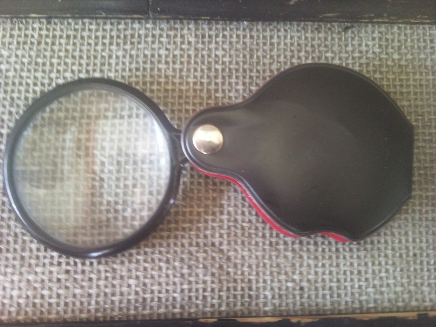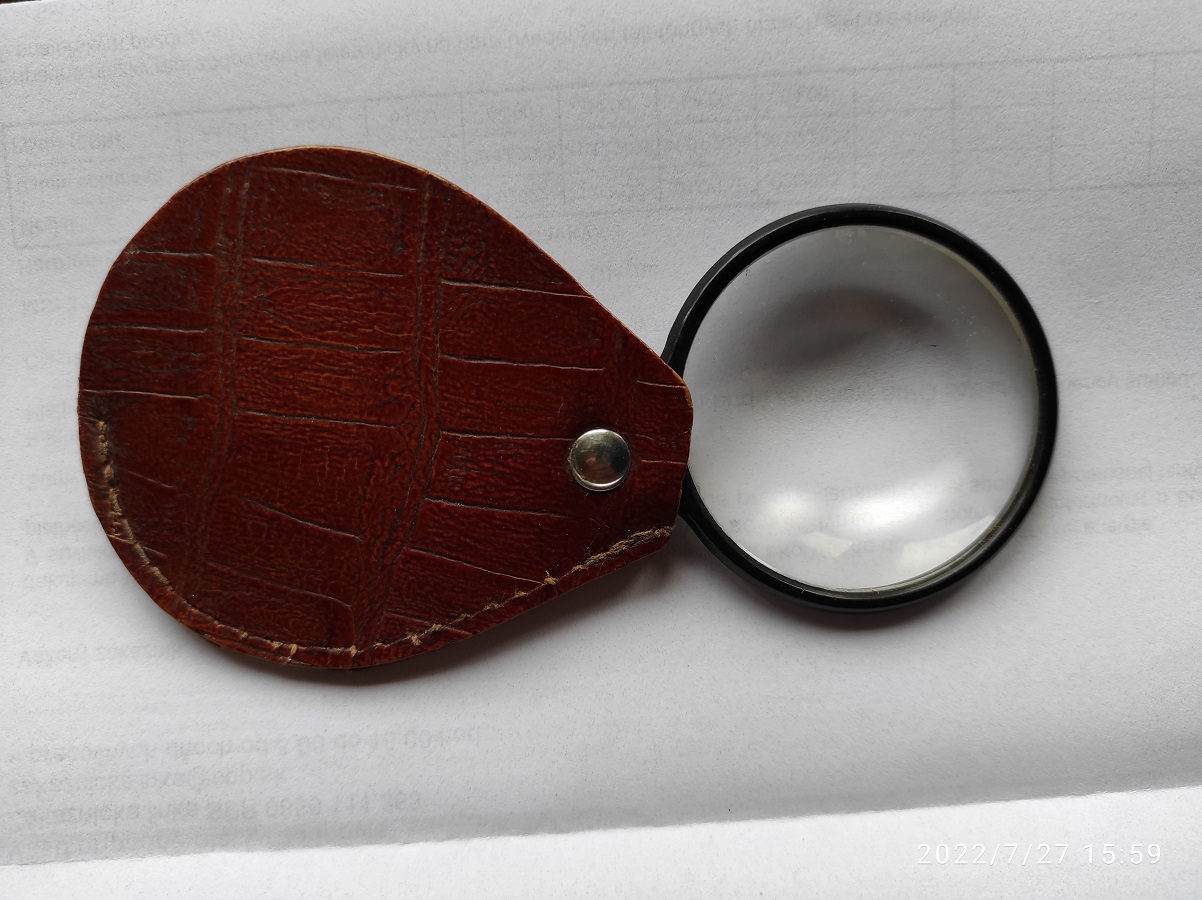 Mám takovou doma. Jenom nyní jsem zkoušel tu objímku a je zřejmě plastová, nechytá jí magnet. Pouzdro je kožené, samotná lupa je skleněná. Nepoužívám jí, mám jiné lupy jak na stojanu s ramenem nebo takovou větší s rukojetí (Sherlock Holmes Wink ).
