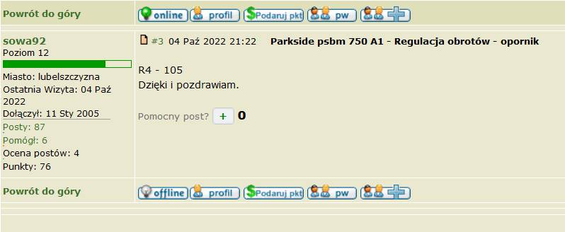Zaslal: pá září 30 2022, 14:24 Předmět: Vŕtačka Parkside ,chýba tam zrejme rezistor,akú má hodnotu?