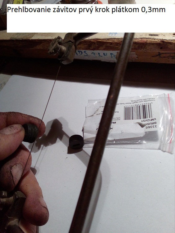 Krytku chytite medzi palec a ukazovak a opriete radsej laket o stol,pílkov s platkom 0,3m v druhej ruke zacnete od zaciatku zavitu robit kratke pohyby polkruhove na malej dlzke zavitu asi 5mm hore-dole po zavite .Otacate krytkov az neskoncite na konci.Tento sposob zopkujete este raz ,ak ste uz neurobili hned velmi hlboky zarez na prvykrat.Potom mozete krytku na smirgli na rovnej ploche dookola obrusit aspon o 0,5mm.ale tak ,aby ostal cast zavitu viditelny nezniceny! Ak mate okrulu lupienkovu pilku do 0,5mm ,tak s tou mozete jemne zavit na vrchu upravit .Potom znovu opakujete postup s platkom 0,3mm ako na zaciatku a osmirglujete znovu dookola parkrat rovnomerne tak,aby ostal aj dostatocny zavit.Trva to asi hodinu poctivej prace,alek ked nemate origos,tak toto je vychodisko z nudze.Ja to robim takto a zatial zadari sa.