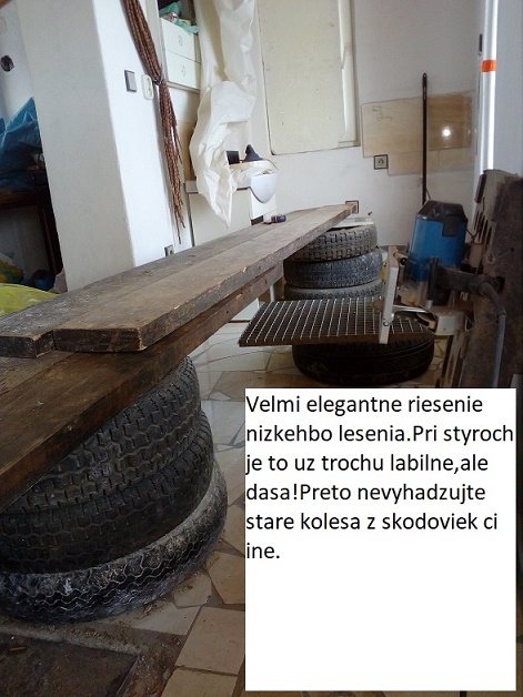 Na obr.kde je to lesenie z pneumatik je vidiet ajtu malu cirkularku odlozenu na pravo