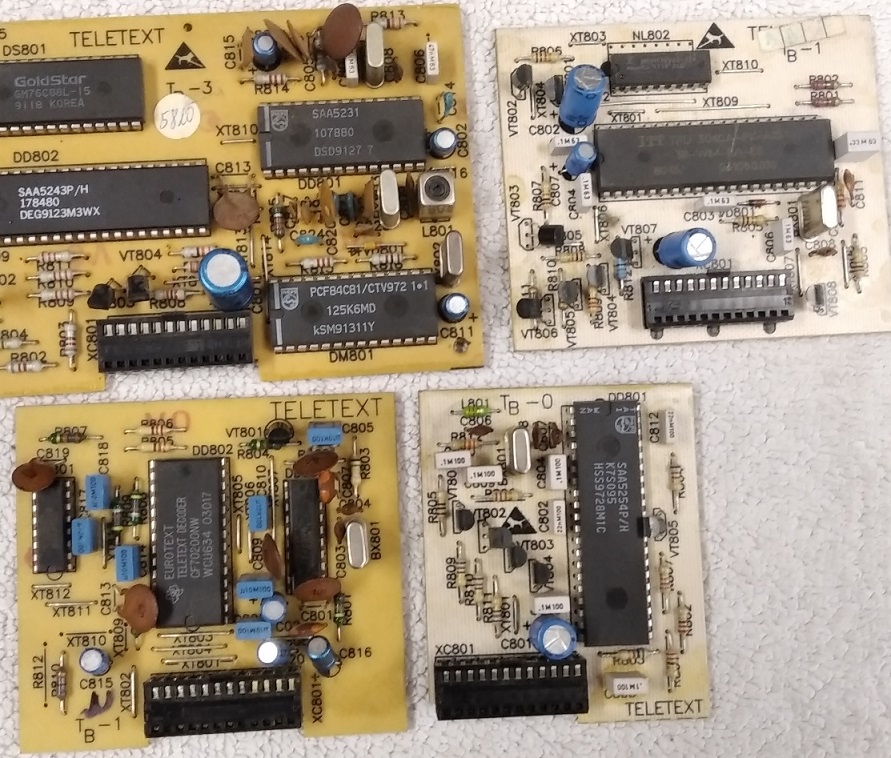 Na foto od Ivan_01 jsou čtyři moduly. Ten s IO Texas by měl chodit hned (dle údajů z dokumentace k OTF C345), modul s SAA5243P/H a pomocným MCU PCF84C81/CTV972 zřejmě taky, pokud se vejde rozměrově. Bílá deska s obvodem ITT je z TV OVP, ta zřejmě fungovat nebude, ta s SAA5254P/H téžžž ne (i ta je z OVPčka).
