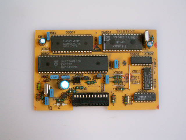Táto technológia je už dávno prekonaná. Cez sat. settobox ešte väčšina staníc txt vysielajú. TXT modul do tohoto TV potrebuje zrejme "pomocné" cmos" obvody. Toto je jadna z vecí, prečo s tým laborujem. Do modulu prichádza signál zo SCART alebo Interné video. Výstup RGB a Blank. Problém je "spolupráca" s riadiacim čipom v TV. Inštrukčnou sadou, ovládacích povelov medzi modulom a MCU v TV. Musí to chodiť na "elektrickej" úrovni aj úrovni "povelov". Sú uvádzané M-bus aj I2C.