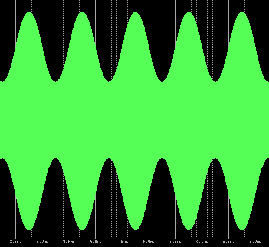 To čemu říkáš superpozice, je normální AM jen podložená ss ofsetem, po oddělení např. transformátorovou vazbou je to už "učebnicová" AM. Podobně to může vypadat podle místa, kde se měří i v místě "opravdové" superpozice, kde se okem hned nepozná rozdílná amplituda kladné a záporné půlvlny modulace.