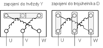Typicky to může být u malých motorů 3x230V do trojúhelníka nebo 3x400V do hvězdy, nebo u větších motorů 3x400V do trojúhelníka a 3x690V do hvězdy (nebo v tomhle případě lze použít přepínání hvězda-trojúhelník pro rozběh). Takže se často (ne však vždycky) musí malé motory cca do 3kW zapojovat do hvězdy, a velké do trojúhelníka. Pokaždé ale podle štítku!