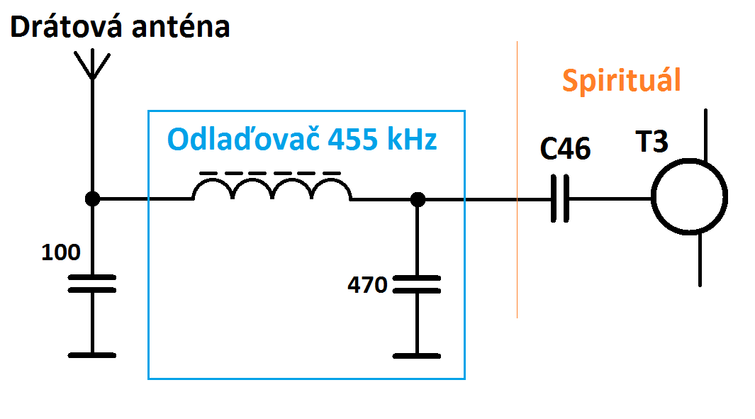Vzhľadom na jednoduché domáce podmienky som vymyslel najjednodušie riešenie - DP filter. Našiel som MF odlaďovač a zapojil som ho podľa obrázku. Nepomohlo. Stanice SV sú tam stále v rovnakej intenzite. Nevedel by niekto poradiť, ako ten DP filter zapojiť správne? Myslím, že na vstupe by mal byť nejako zapojený kapa delič (?). Chcem sa vyhnúť tomu, aby som navíjal vlastnú cievku so sekundárnym vinutím. Tak by to malo byť správne, ale radšej by som pre jednoduchosť dal DP filter s nejakým kapa deličom. S tým navíjaním do bude oštara.