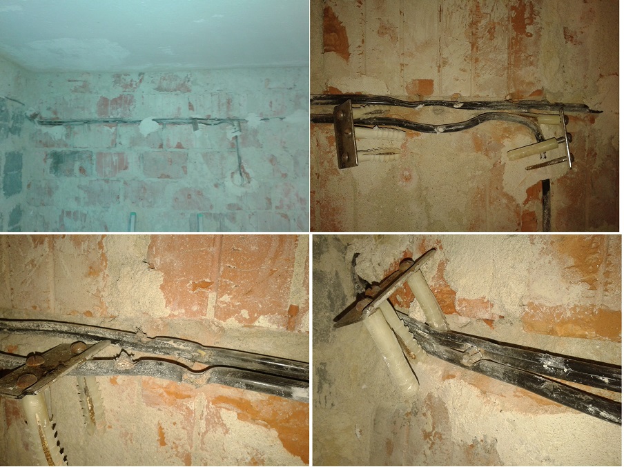 To je snad bez diskuse, že hovadem byl ten, co tam dal ty dráty. Vše má své předepsané výšky na uchycení, skříňky, vodovodní trubky, odpady atd.