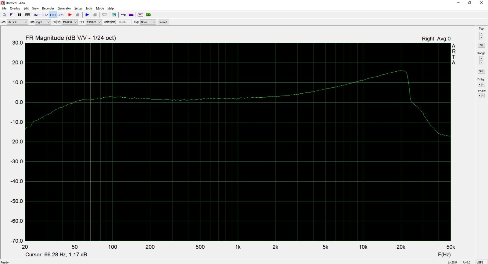 Fostex G24S Frekvenčná charakteristika ružový šum 0dB 320nWb/m