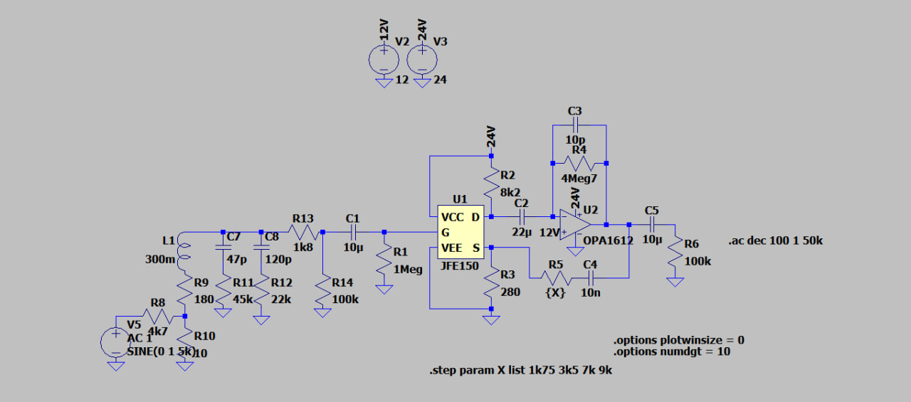Tak ma teda napadlo skombinovať OPA1612 a JFE150 do takejto schémy.