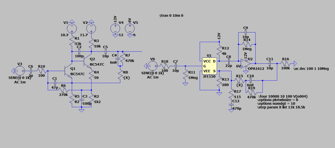 Tu sa ukázala schéma nízkošumového zosilňovača s jedným Jfetom JFE150 a operačným zosilňovačom. Jfet ako súčiastka je priamo súčasťou väzby operačného zosilňovača. Zaujala ma lebo rieši rovno problém vysokého vstupného prúdu tranzistorových operákov, a teda pomáha dosiahnuť fakt nízkeho šumu. A tiež nestojí nejak extrémnu sumu..(+/- 2eur)