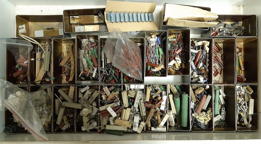 šuplík výkonových rezistorů z CRT televizorů,