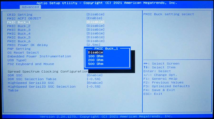 BIOS -> Advanced -> System Component -> PMIC Buck_1