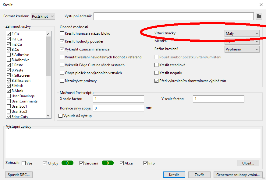 Ono to samozřejmě u Gerberu nejde, ale při výstupu na tiskárnu včetně virtuál pdf ano.